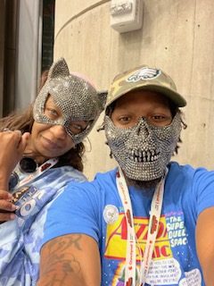 It’s ten ten on a Friday, a warm October Friday at that. What better thing to do than to take a business trip out of town. Pack snacks, grab our right hand man and go. One bus trip from PA to the big apple, New York! Now go on: Sing the song by Alicia Keys when you say New York – the tone had to beam in, right. This year, Maryam’s Mark and Company took the bus ride along the Peter Pan for a few hours of fun at New York Comic Con, one of the biggest comic book related conventions known to mankind. Spectators from all over came to network, collect, be fans and even attend screenings. There were cosplayers galore and even hip hop celebrates were in attendance of this fantastic family friendly event. Along our travels, we stopped by Planet Hollywood’s red carpeted event. Crunchyroll hosted Tokyo Ghoul, is a Japanese dark fantasy manga series written and illustrated by Sui Ishida, which is in its second season. Although we did not stop to watch Tokyo Ghoul, due to the different venue location, there were plenty arriving to watch. We walked off to NYCC, meet with crowds of cosplayers and we too were ready to mask up and play.